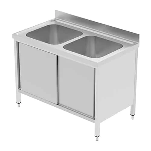 مغسلة حوضين ستانلس ستيل بخزانة 140سم